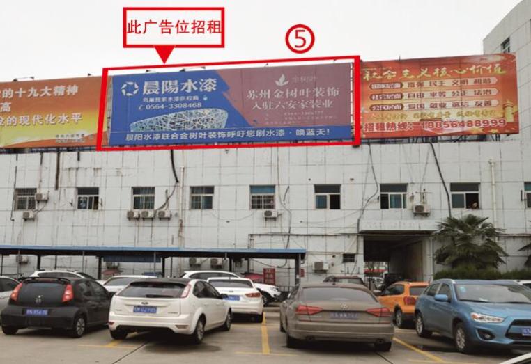 迎宾大道与佛子岭路交汇处客运东站出口旁楼顶大牌【图片待完善】